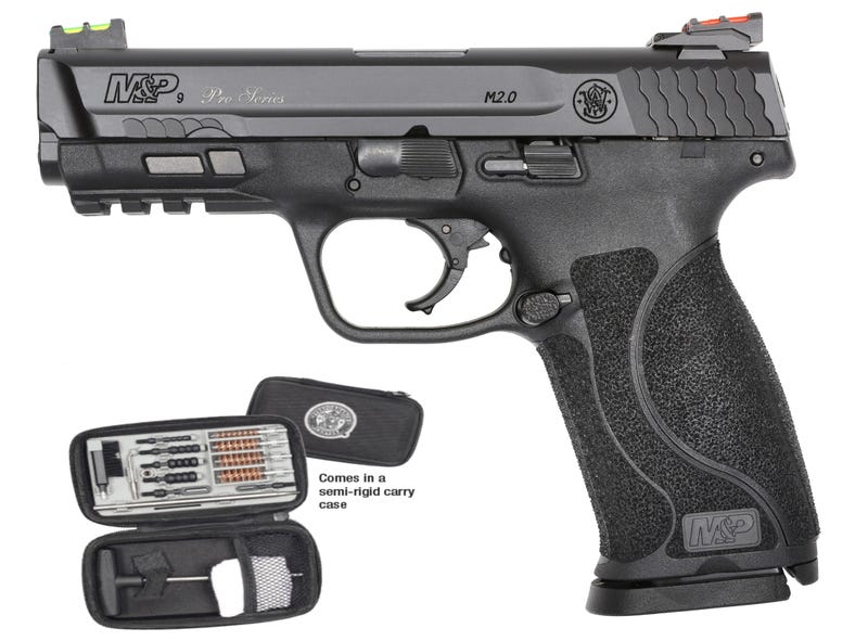 The S&W Performance Center M&P 9 M2.0 Pro Series’ low barrel axis makes the M&P pistol more comfortable to shoot and allows for faster aim recovery. The pistol features a PC tuned action with audible trigger reset, front cocking serrations, Armornite durable corrosion resistant finish and an extended rigid embedded stainless steel chassis system to reduce flex and torque while firing. Includes a semi-rigid carry case, two magazines and a Performance Center cleaning kit that includes collapsible cleaning rod with rotating T-handle, 10 cotton cleaning patches, nylon cleaning brush, bronze bore brushes and nylon jags (22 cal, 9mm/357/38 cal, 40/10mm cal, 45 cal) and nylon slotted tips.