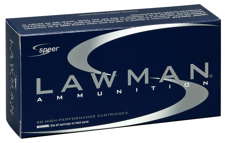 Speer Lawman training ammunition brings superb consistency along with feel and point of aim that’s as close as possible to your personal defense loads. All options are loaded with a TMJ bullet with a plated jacket that encapsulates the entire lead core.
