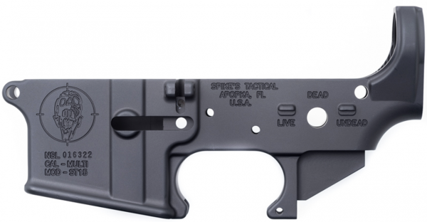 The Spike’s Tactical Zombie Lower is a special series lower featuring a Zombie logo instead of the usual ST Spider logo. The selector markings are Live/Dead/Undead.