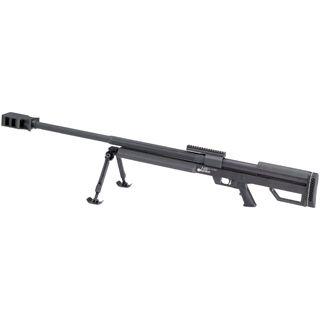 Military standard 1913 rail. Single trigger 2 stage factory set at 4.00lbs. Heavy barrel with high-effeciency muzzle brake. Includes bipod. Synthetic black stock. 50 BMG 1rd 33”.