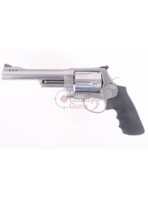 Integral Compensator, Half-Lug Barrel • Most Powerful Production Revolver in the World Today • Massive .500 S&W Magnum® Cartridge with 2600 ft/lb. Muzzle Energy • A Hunting Handgun For Any Game Animal Walking • Recoil Tamed with Effective Muzzle Compensator • Internal Lock In 2003 the gunsmiths and engineers at Smith & Wesson wanted to deliver maximum power for serious handgun hunters. The power they sought required an entirely new frame, the massive “X-Frame™,” and was the basis for the new Model S&W500™, the most powerful production revolver in the world. This ushered in the era of the “big gun” and was only the beginning. For ultimate power and velocity there’s nothing even close to an X-Frame model handgun.