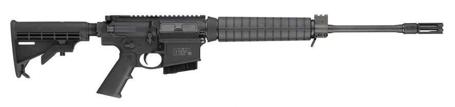 This M&P features a mid-length gas system, lightweight barrel with an Armornite finish and an enhanced flash hider, black 6-position CAR stock and an optic ready black hard anodized aluminum receiver. It also has an ambidextrous safety, magazine and bolt release.