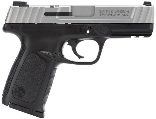 This two tone model has a black frame with a satin finish stainless steel slide and includes a 14-round magazines.