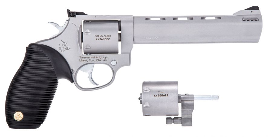 Taurus 692 revolver is an ideal companion for personal and home defense as well as simply shooting more rounds at the range. It offers the ability to change the caliber from 38 Special +P/357 Magnum, to 9mm Luger with a simple swap of the cylinder. The ported barrel manages recoil for quicker target re-acquisition. The 692 revolver has fixed front/adjustable rear sights, spurred hammer and Taurus Ribber Grip, and a transfer bar safety. Included are Stellar clips.
