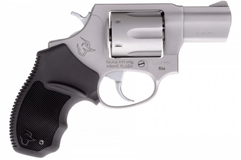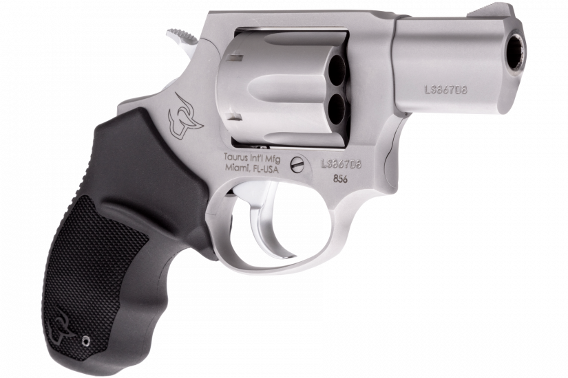 The Taurus 856 is a reliable 6-shot, 38 Special revolver that features soft rubber grips-making it comfortable to shoot at the range while the double/single action increases speed and accuracy for follow-up shots. The 856 is offered in either a Matte Blue or Matte Stainless finish. Known for its easily managed recoil impulse, the .38 Special round of the 856 can accommodate ammunition ranging from light target loads to self-defense rounds. The DA/SA action and 2-inch barrel on the 856 optimizes on-body or off-body carry, and home defense usage.