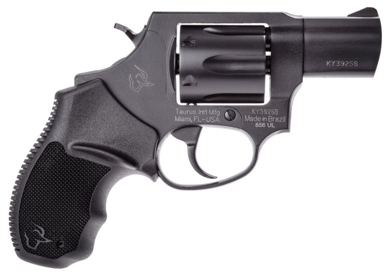 Taurus 856 is ideal on-body or off-body carry, and home defense usage. It features soft rubber grips, while the double/single action increases speed and accuracy for follow-up shots. The 856 also has serrated ramp front/fixed rear sights and a transfer bar safety.