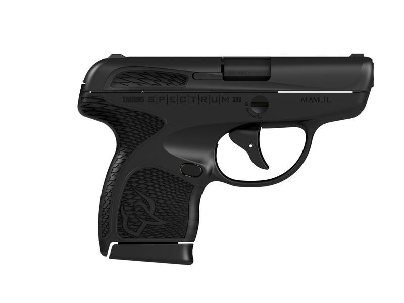 Taurus 380 Spectrum is a super concealable pocket pistol with only a 2.8 inch barrel. It holds 7 rounds of .380 ACP in the magazine and comes with a black finish. Ships with one 6 round magazine and one 7 round extended magazine. Buy guns online for the best deals on Taurus guns from GrabAGun today!