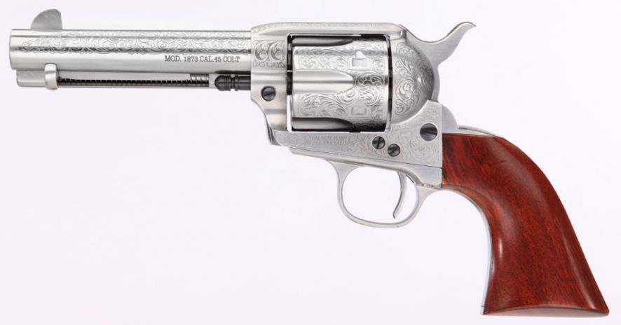 Taylors & Co. Model 1873 Cattleman single-action is a classic western six-shot revolver. It is manufactured using the highest quality standards available. The frame is forged which results in better grain structure and strength, making it ideal for competitive shooting.