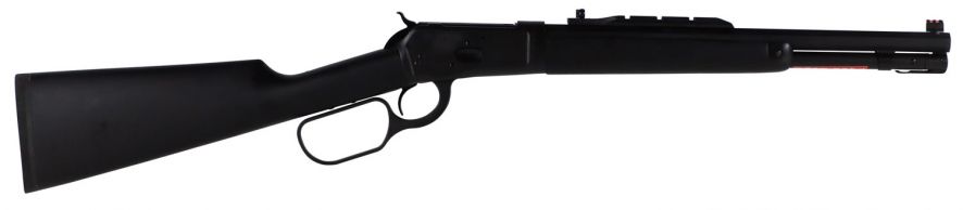The Alaskan combines tradition with modern technology creating a fast handling 1892 lever action rifle and is designed specifically for the hunting market. The sights are Skinner Express style while the barrel is drilled and tapped for optics. Its stock and forend are made of wood with overmolded rubber soft touch finish, that is made of anti-shock rubber and has a padded stock end