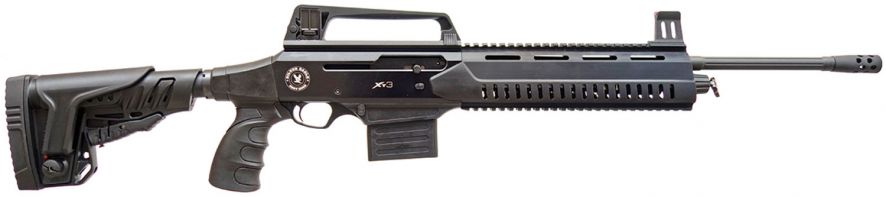 The XT3 is a durable gun with very high-quality components, including a precisely milled action bar with weldless design, a ratcheting barrel lock ring, and a solid, dual-ring gas piston. Fed by a detachable, bottom-feeding magazine, the XT3 also is a fast-cycling semi auto. It features a removable muzzle brake and 18.5 barrel. This model ships in a hard case with sling and two five-shell magazines. Each magazine includes a restrictor that may be installed to limit the magazine capacity to two shells.