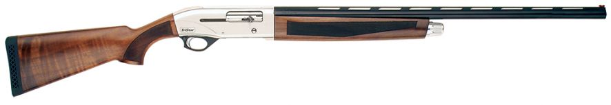 TriStars Viper G2 Silver shotgun that allows you to shoot light target loads to heavy waterfowl loads. The chrome-lined barrel is constructed of steel and has a vent rib and fiber optic front sight. The barrel also comes with three interchangeable Beretta Mobile style choke tubes (IC, M, F), choke box and choke wrench. Its stock and forearm are constructed of a Turkish walnut with a semi-gloss finish.