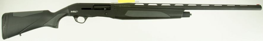 This 12 gauge has a 28 barrel with an overall black finish.