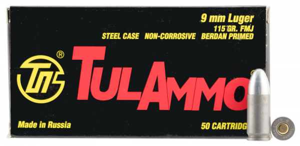 The TulAmmo Handgun ammunition offers high performance for the high volume shooter. The rounds are 115 grain full metal jacket load that are noncorrosive. The casings are steel with a polymer coating. Get the best deals on 9mm ammo for sale online from GrabAGun today!