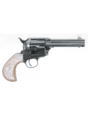 Doc Holliday is one of the most beloved dandy-gamblers in American lore, who often doubled as a lawman on the side of his friend Wyatt Earp. This revolver follows the lines of Doc’s Lightning revolver, but is available in the more reliable 1873 action and the powerful .45 Colt cartridge. Doc has a full nickel plated steel finish with a pearl-style grip.