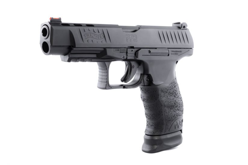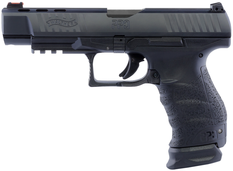Walther PPQ M1 5” Barrel with Ported Slide. It is widely accepted that the Walther paddle magazine release is the fastest, most efficient, reloading mechanism available today. While most consumers in the U.S are accustomed to a button release, the awareness of the paddle release and its advantages is growing. The new PPQ M1 5” includes the standard PPQ trigger, the undisputed best factory trigger on a striker fired pistol available today. The new Walther PPQ M1 5” comes with an upgraded red fiber optic front sight, just like the Walther Q5 Match. It also comes standard with one 17 round extended magazine and one standard 15 round magazine. The PPQ M1 5” features the PPQ polygonal rifled 5” barrel. Firearm carries Walther’s Legendary Limited Lifetime Warranty.