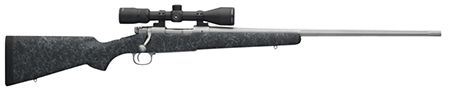 The Model 70 Extreme Weather Stainless utilizes a Bell and Carlson lay-up composite stock that provides a solid feel and features trim and lightweight ergonomics. It has a textured charcoal gray matte finish for rugged good looks and improved grip in adverse conditions. The sculpted cheekpiece helps insure proper eye-to-scope alignment from any shooting position. The thick, black Pachmayr Decelerator pad helps take the felt recoil bite out of high performance magnum cartridges. Like all Model 70s today, it features the Pre-64 type claw extractor with Controlled Round Feeding so the cartridge may be easily withdrawn from the chamber at any point after it leaves the magazine. The Extreme Weather SS rifles free-floating, fluted stainless steel barrel is made in the same factory as those found on U.S. military rifles and machine guns, and features a recessed target crown to protect the rifling.