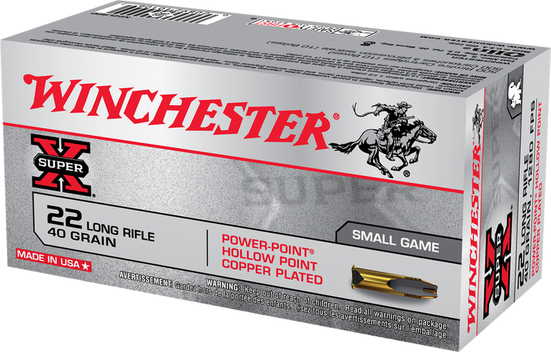 Winchester Super-X Power-Point 22LR ammunition offers exceptional quality and outstanding performance for all types of hunters and shooters. Each bulk box contains 222 rounds of 22 Long Rifle loaded with 40 grain Copper Plated Hollow Point projectiles. Buy ammo online and .22 LR ammo for sale from GrabAGun today!