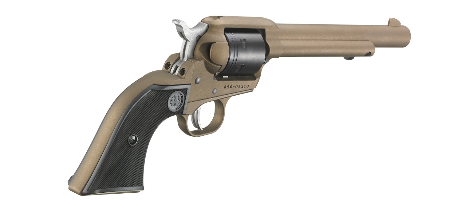 Blade front and integral notch rear sights. Chambered for affordable .22 LR ammunition. Transfer bar mechanism and loading gate interlock provide an unparalleled measure of security against accidental discharge. Cold hammer-forged barrel results in ultra-precise rifling that provides exceptional accuracy and longevity. Cerakote finish provides rugged reliability in all environments. Checkered synthetic grips on a Single-Six pattern grip frame.