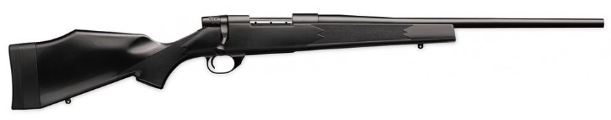Weatherbys Vanguard rifles are guaranteed to shoot a 3-shot group of .99 or less at 100 yards (SUB-MOA) from a cold barrel when used with Weatherby factory or premium ammunition. Vanguard rifles are equipped with a match quality, two-stage trigger (adjustable down to 2.5 lbs.) and a 3-position safety, with the middle position allowing the shooter to work the action while safety is still engaged.The Vanguard action incorporates a one-piece machined bolt body, fluted for reduction in weight and bearing surface area, while eliminating binding for smooth action. Three gas ports allow high-pressure gases to escape laterally in the event of an accidental case rupture, and the massive M-16-style extractor ensures reliable and positive extraction. Vanguard rifles have a one-piece machined receiver featuring an integral recoil lug for the utmost in strength and structural integrity, along with a one-piece trigger guard with a hinged floorplate for easy access to unfired cartridges in the magazine. The Synthetic Compact model features composite Monte Carlo stock with a removable elongated spacer to adjust length of pull (12.5 to 13.625) and a 20 #1 contour barrel a bead blasted matte blued metal finish.